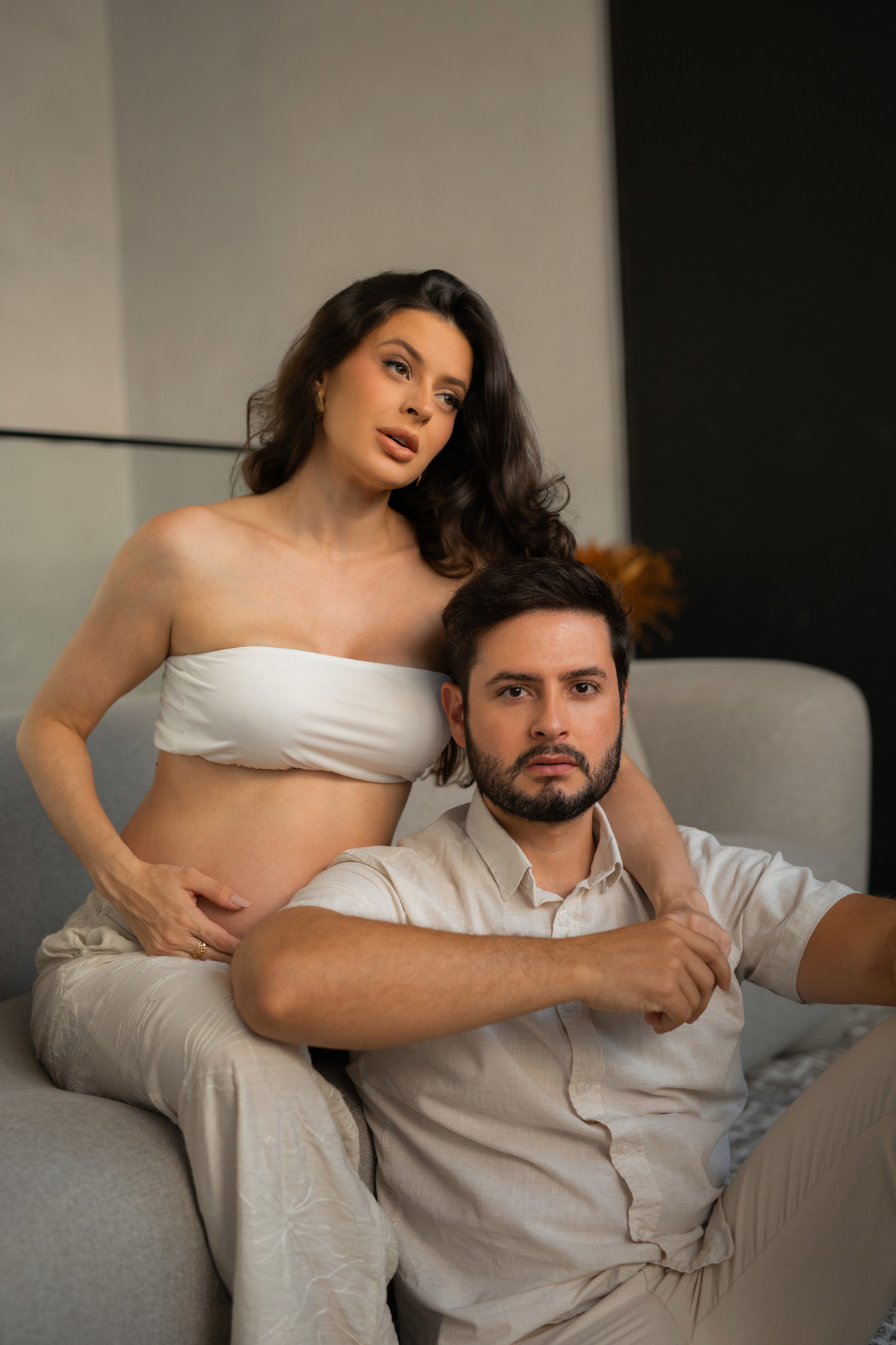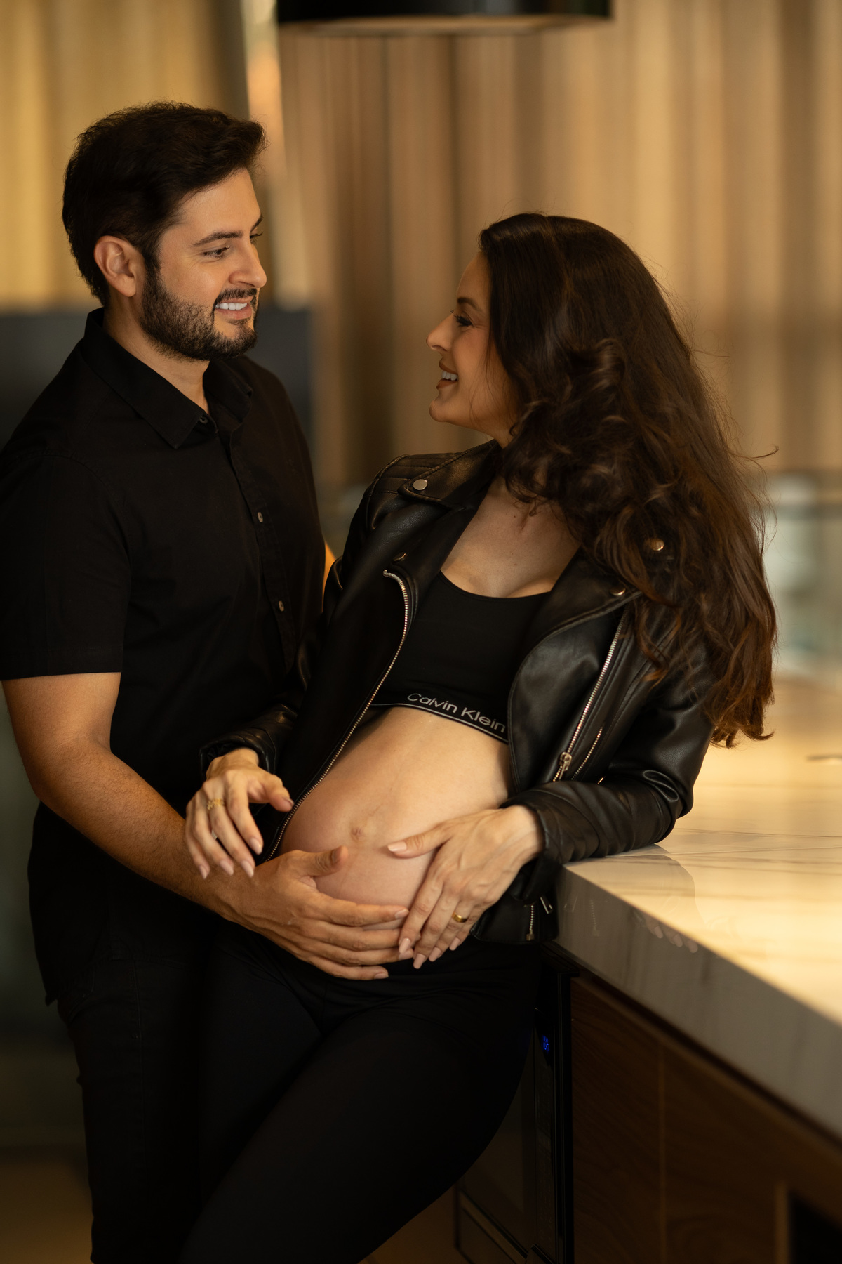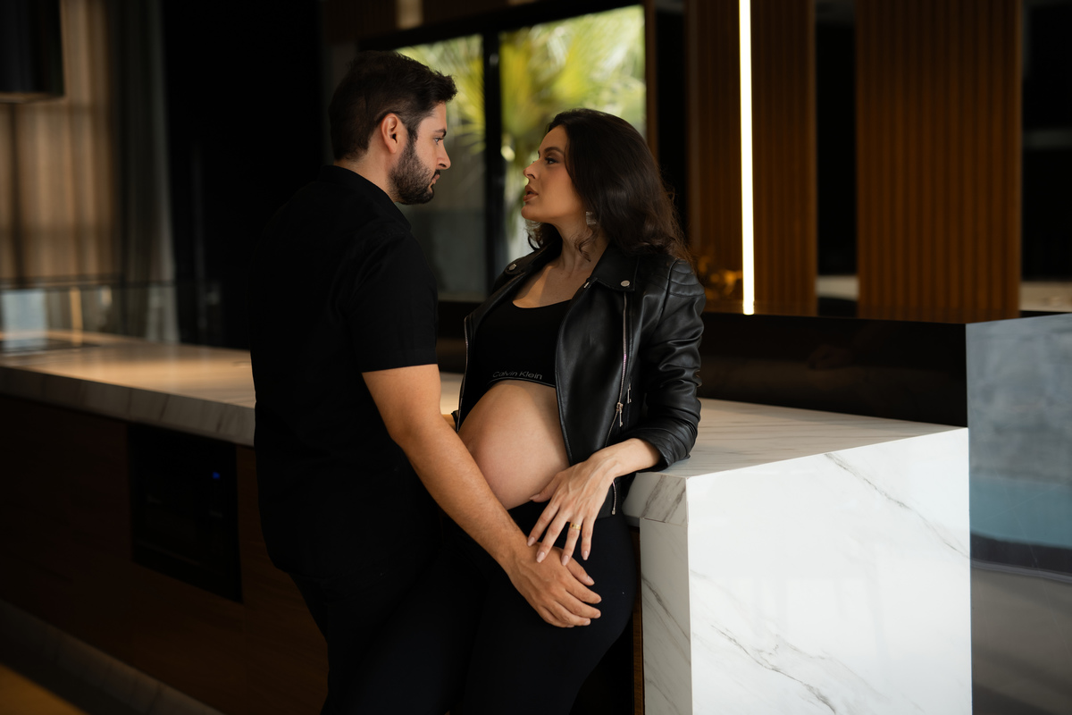 Escolheram viver esse momento no próprio lar, onde cada detalhe carrega significado, tornando o ensaio ainda mais íntimo e verdadeiro.